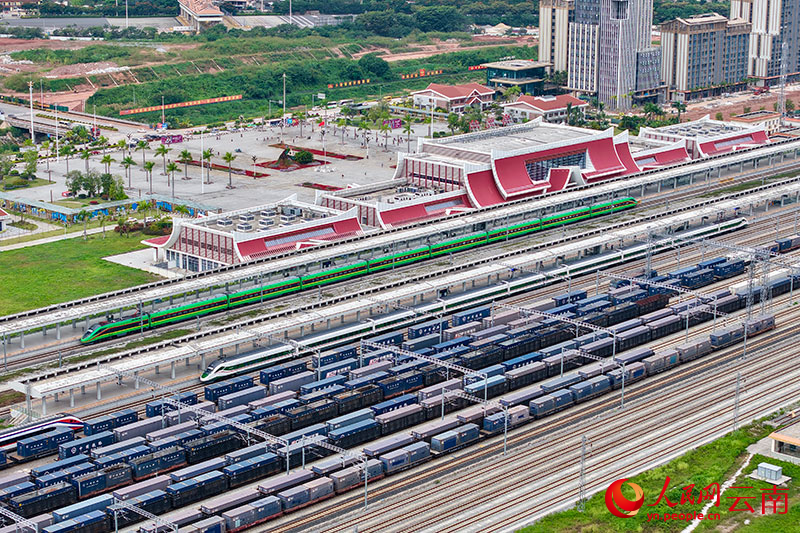 清晨,中老铁路万象南站,一列满载着老挝钾肥原料的“云南号”国际货运列车缓缓从站台驶出。