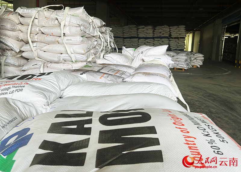 “国内的钾肥原料主要来自青海、新疆等地。因为缺口较大,很大一部分用量还需要从国外进口。一方面是进口钾肥价格不稳定,波动很大;另一方面,从沿海港口或者青海、新疆运过来,物流运输时间较长,运输成本也很高,中老铁路的开通改变了这种状况。”云南腾俊保税物流管理有限公司副总经理杨荣解介绍道,“2024年,我们首创了‘中老铁路+保税’模式,货物通过1035公里的中老铁路,一天半就能从老挝万象到达腾俊国际陆港,为钾肥的稳定供应提供了坚实支撑。”